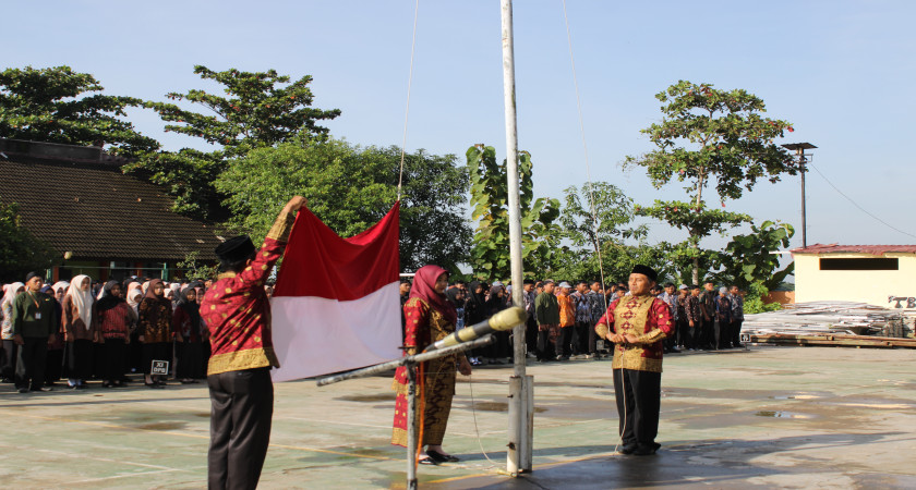 Seluruh siswa-siswi peserta upacara tampak rapi dan kompak mengenakan pakaian adat batik, menunjukkan kekayaan budaya Indonesia sekaligus memberikan nuansa istimewa pada peringatan hari besar ini.